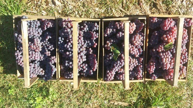 Na foto as duas caixas da direita, com uma folha dentro, estão sem a aplicação do Sifol, suas uvas são visivelmente mais claras dos que as com a aplicação do produto